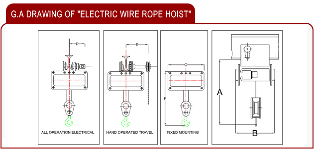 - Assembled line of hoist from independent units that are hoisting gear box, hoisting motor with brake, rope drum, electric control panel and travelling trolley.